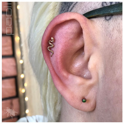 Helix to w dużym uproszczeniu przekłucie twardej chrząstki w górnej części ucha. Zazwyczaj nie sprawia większych problemów, więc może to z tego właśnie powodu jest jednym z najczęściej wybieranych przekłuć w ogóle. Opcja także dla osób mających niewielkie doświadczenie z piercingiem.