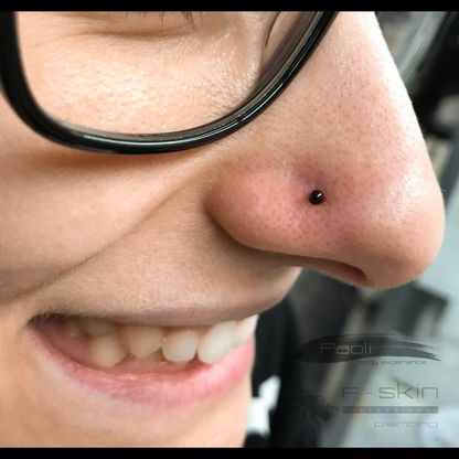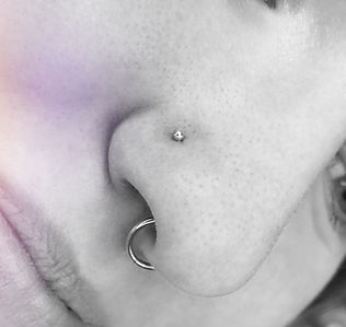 Dosyć popularne przekłucie chrząstki skrzydełkowej większej. Nazywane też przekłuciem płatka nosa. Fajne, łatwe i przyjemne - anatomicznie mało wymagające. Ale jako, że nie jesteśmy sadystami (no, może tylko troszkę) - na czas gojenia NIE ZAKŁADAMY kółek ani innych, mniej lub bardziej dyndających pizdryków.